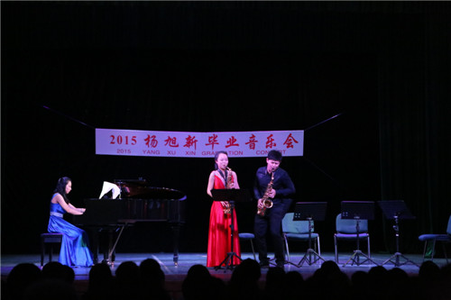 2015年6月24日晚5:30,在我校戏剧厅举办了杨旭新同学的毕业音乐会。此次音乐会邀请到大连电视台著名主持人李鑫,城市交响乐团、大连神谷交响乐团及随同的俄罗斯友人和各大音乐学院的专家、教授等,我校张晓宓校长及各科室领导也参加了活动。