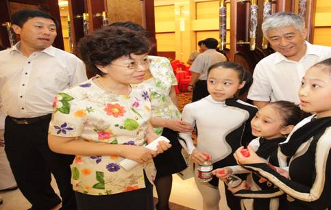 200995朱程清副市长在教师节颁奖庆典结束后与我校杂技专业学生合影
